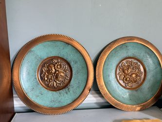 Pair of Copper Wall Plates – Floral Repoussé – Verdigris Patina$85Hampton, VA
