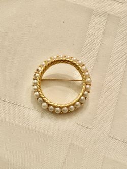 Trifari Pearl Gold Tone Brooch Pin Vintage$80Lawrence, MA
