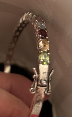 Vintage Multi Gemstone Hinged Bangle Bracelet Garnet Citrine Blue Topaz And Amethyst In Sterling Silver And Set Of Earrings $225Lawrence, MA