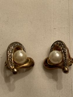 Vintage Rhinestone Faux Pear Gold Tone Heart Clip Earrings $20Lawrence, MA