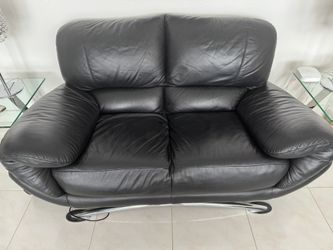 Carlo Perrazzi Modern Black Leather Loveseat with Chrome Legs – Good Condition Well maintained $249Laud By Sea, FL