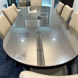 Large Wooden Glass-Top Conference Table + 10 Leather Office Chairs – Good Condition!$1,498Laud By Sea, FL