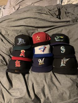 Vintage New Era Fitted Lot 7 1/8 Hats Marlins, Mariners, Angels,blue Jays Etc.$100Stickney, IL