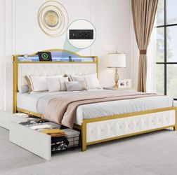 UPHOLSTERED BED FRAME QUEEN SIZE WITH STORAGE DRAWERS AND LED LIGHTING BRAND NEW IN BOX!!!$160Seattle, WA