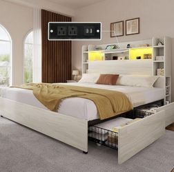 BED FRAME QUEEN SIZE WITH STORAGE DRAWERS BOOKCASE HEADBOARD AND LED LIGHTING BRAND NEW IN BOX!!!$200Seattle, WA