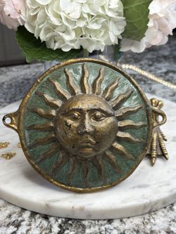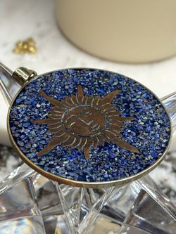1970s Vintage Sun/Moon Medallion Pendant Lapis Azurite Chip Inlay$100Berlin, CT