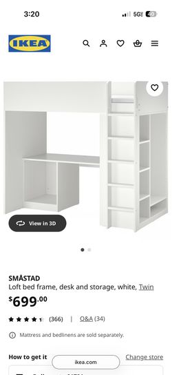 SMÅSTAD Loft bed frame Bunk Bed, desk and storage, white$200Irwindale, CA