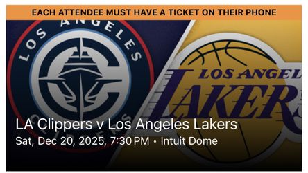 🎟️ Lakers vs ___ – 12/20 (4 Tickets!) Section TW 14 • Row 9 — Great seats together!$250West Covina, CA