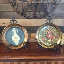 Beautiful Decorative 10” Plates With 14” H Black Metal Stands$25Baiting Hollo, NY