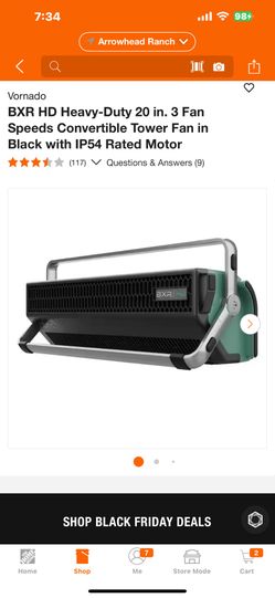Vornado BXR HD Heavy-Duty 20 in. 3 Fan Speeds Convertible Tower Fan in Black with IP54 Rated Motor$40Glendale, AZ