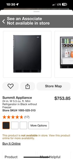 Summit Appliance 24 in. W 5.5 cu. ft. Mini Refrigerator in Black without Freezer$440Glendale, AZ