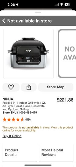 NINJA Foodi 5-in-1 Indoor Grill with 4 Qt. Air Fryer, Roast, Bake, Dehydrate and Cyclonic Grilling$150Glendale, AZ
