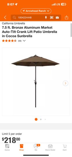 California Umbrella 7.5 ft. Bronze Aluminum Market Auto-Tilt Crank Lift Patio Umbrella in Cocoa Sunbrella$140Glendale, AZ