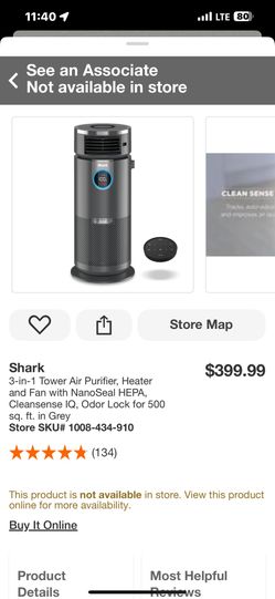 Shark 3-in-1 Tower Air Purifier, Heater and Fan with NanoSeal HEPA, Cleansense IQ, Odor Lock for 500 sq. ft. in Grey$280Glendale, AZ