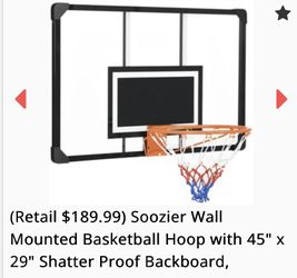 Soozier Wall Mounted Basketball Hoop with 45" x 29" Shatter Proof Backboard,$110Glendale, AZ