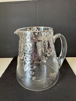 Vintage Silver Overlay Glass Pitcher with Floral and Butterfly Design$70Naperville, IL