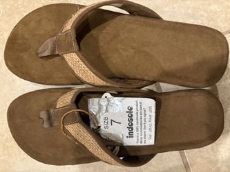 INDOSOLE TAN BROWN BURLAP FLATS SUEDE SANDALS SLIPPERS SIZE 7 NEW IN BOX HANDMADE IN BALI INDIA$25Anaheim, CA