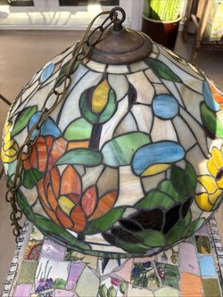 Beautiful Large Vintage Stained Glass Tiffany Style Floral Hanging Metal Chain Lamp Shade 21in diameter$300Anaheim, CA