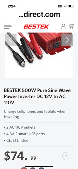 BESTEK 500W Pure Sine Wave Power Inverter DC 12V to AC 110V$50San Diego, CA