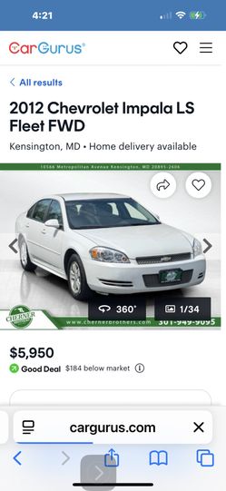 2012 Chevrolet Impala$3,995212k milesIssue, MD