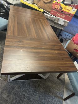 Modern wood dining table with geometric white legs 5.11ft$300West Hills, CA