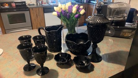 Vintage Tiara Cameo Black Indiana Glass Diamond Point Goblets Vintage Tiara Cameo Black Indiana Glass Diamond Point Set $225Lexington, NC