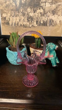 Fenton Dusty Rose 9” Glass Basket with Twisted Handle Pink Floral Wavy Vase$25Lexington, NC