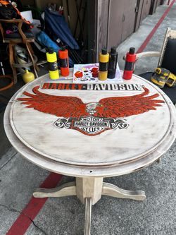 One Of A Kind Harley Table And Chairs With Badges $500Costa Mesa, CA