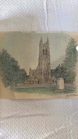 vintage etched print of the Duke University Chapel The drawing is signed "James Beattie #13/350$30Pompano Beach, FL