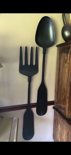 LARGE METAL POTTERY BARN FORK & SPOON SET4 Foot Hi$60Harwood, MD