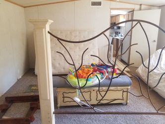 King Headboard And Frame White Washed Cream With Bronze Steel$80Hardy, VA