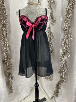Cacique Intimates Black Pink Heart Embroidered Babydoll Chemise Lingerie 14/16$29Avon Lake, OH