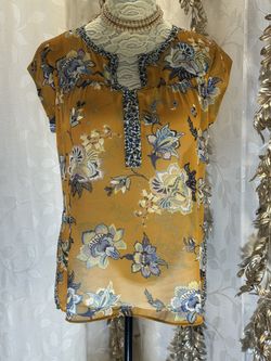 DR2 Womens Floral Mixed Print Cap Sleeve Blouse Mustard Yellow Small boho chic$27Avon Lake, OH