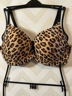 PINK by Victoria's Secret 42DD Leopard Print Bra Black Trim Bow full coverage $27Avon Lake, OH