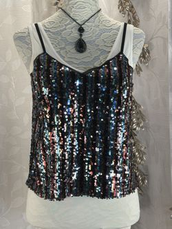 Skies Are Blue Rainbow Sequin Cami Tank Top Size Small NWT Holiday Party Glam$37Avon Lake, OH