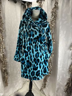 Betsey Johnson Teal Leopard Fleece Hooded Robe XS/S Blue Black Animal Print$31Avon Lake, OH