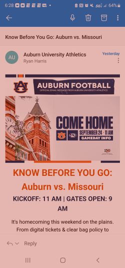 Auburn Vs Missouri Tickets$100Auburn, AL