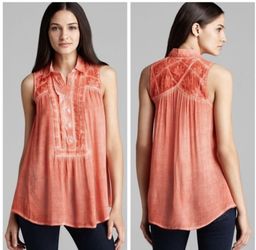Free People Coral Partial Button-down Blouse - Size Medium$14South Plainfield, NJ