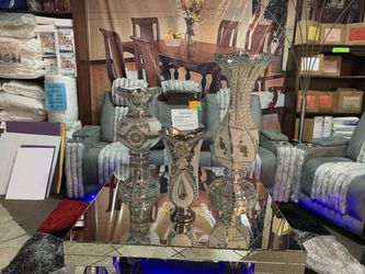 Luxury Mirrored Crystal Floor Vase Set - Piece Glam Decorative Vase$10Harrisburg, PA