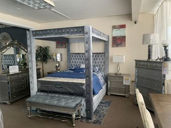 Luxurious Velvet like fabric and tufted canopy bed- regal gray finish$10Harrisburg, PA
