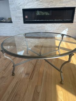 Italian Glass Coffee Table with Metal Frame and Brass Accents – 36” Diameter$90Northport, NY