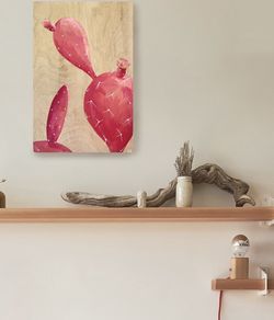 18” x 12” Original Fine Art Acrylic Pink Cactus Desert Painting On Stained Birch Wood $180Carlsbad, CA
