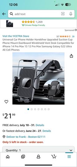 Universal Car Phone Holder Handsfree Upgraded Suction Cup Phone Mount Dashboard Windshield Vent Desk Compatible for iPhone 14 Pro Max 13 12 Pro Max Sa$12Boston, MA