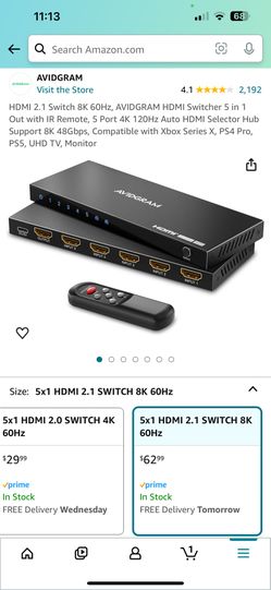 HDMI 2.1 Switch 8K 60Hz, AVIDGRAM HDMI Switcher 5 in 1 Out with IR Remote, 5 Port 4K 120Hz Auto HDMI Selector Hub Support 8K 48Gbps, Compatible with X$40Boston, MA