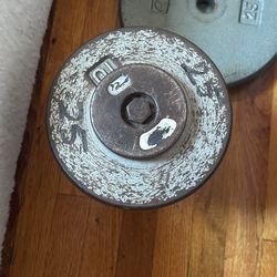 2 Dumbbells 35/25 Pounds. Plus Long Tread Bar With 80 Pounds Disc. $50New York, NY