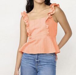 Women's LC Lauren Conrad Ruffle Peplum Tank in Peach Mum - S NWT$15E Atlantc Bch, NY