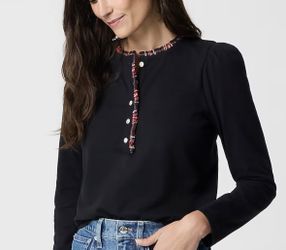J.Crew Factory Long-Sleeve Tartan and Jewels Henley in Black - XS NWT$15E Atlantc Bch, NY