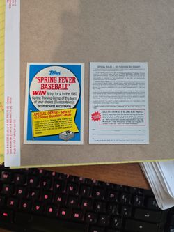 1986 Topps Spring Fever Baseball Sweepstakes $5Clinton Township, MI