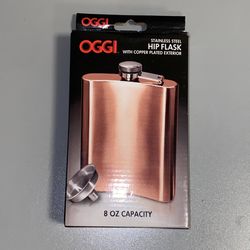 Oggi 8oz Stainless Steel Hip Flask with Copper Plated Exterior New In Box$10Burbank, CA