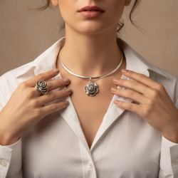 Sterling Marcasite Rose On Omega Necklace with Rose Ring Set $180Los Angeles, CA